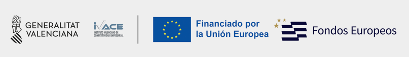 Action 030402_01 du POCV. Projet coordonné par l'Institut Valencià de la Competitivitat Empresarial (IVACE) cofinancé par l'Union européenne à travers le Fonds européen de développement régional (FEDER/ERDF). Il s'inscrit dans le cadre du Programme opérationnel de la Communauté valencienne 2014-2020 (POCV) en relation avec l'objectif thématique de l'axe 3 " Améliorer la compétitivité des PME " et l'objectif spécifique 342 " Promouvoir l'innovation des PME et la coopération pour l'innovation dans tous les domaines ".